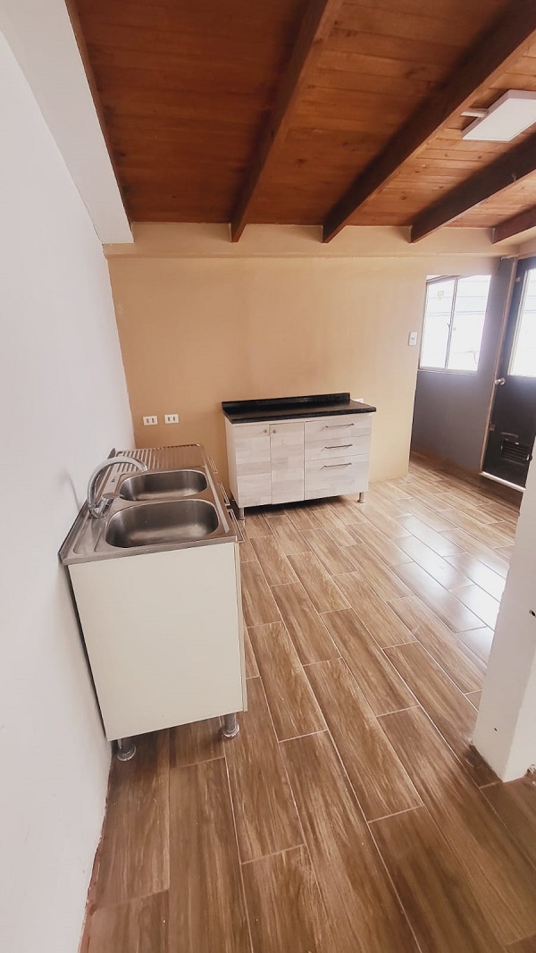 Distribución primer piso: Living-comedor, cocina ampliada.