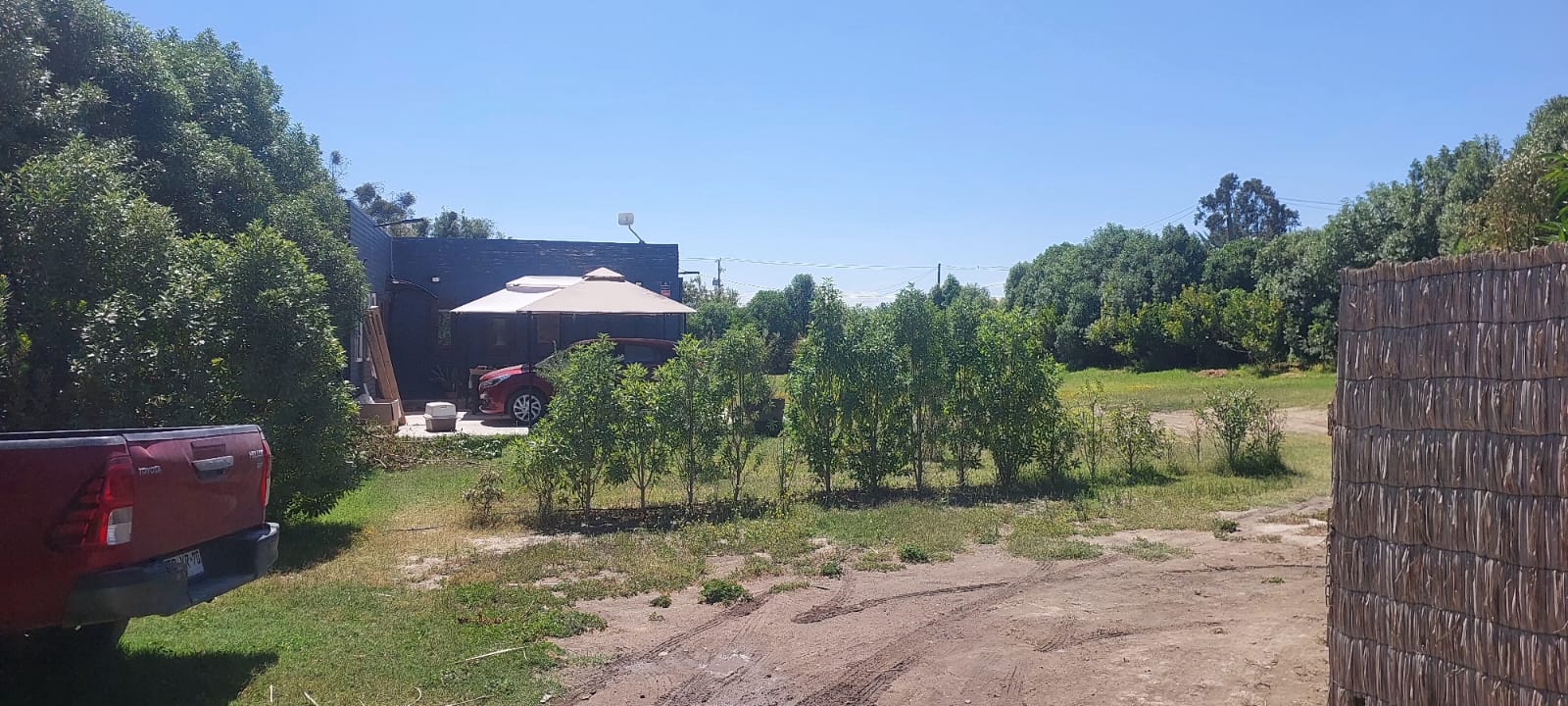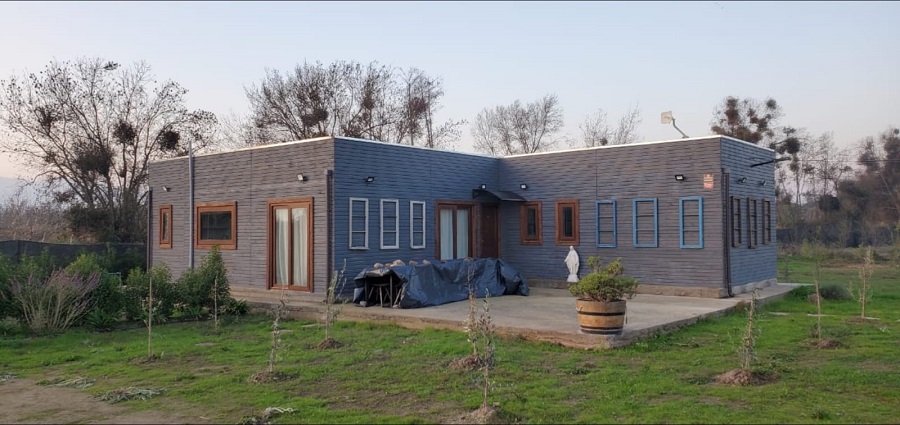 Superficie de 40.000 m2, plana. Cuenta con 2 casas prefabricadas tipo mediterránea de 100 m2 cada una. Con 4 dormitorios, 2 baños, living-comedor, cocina, con sus respectivos jardines y arbustos formados, ambas con agua potable y luz eléctrica.